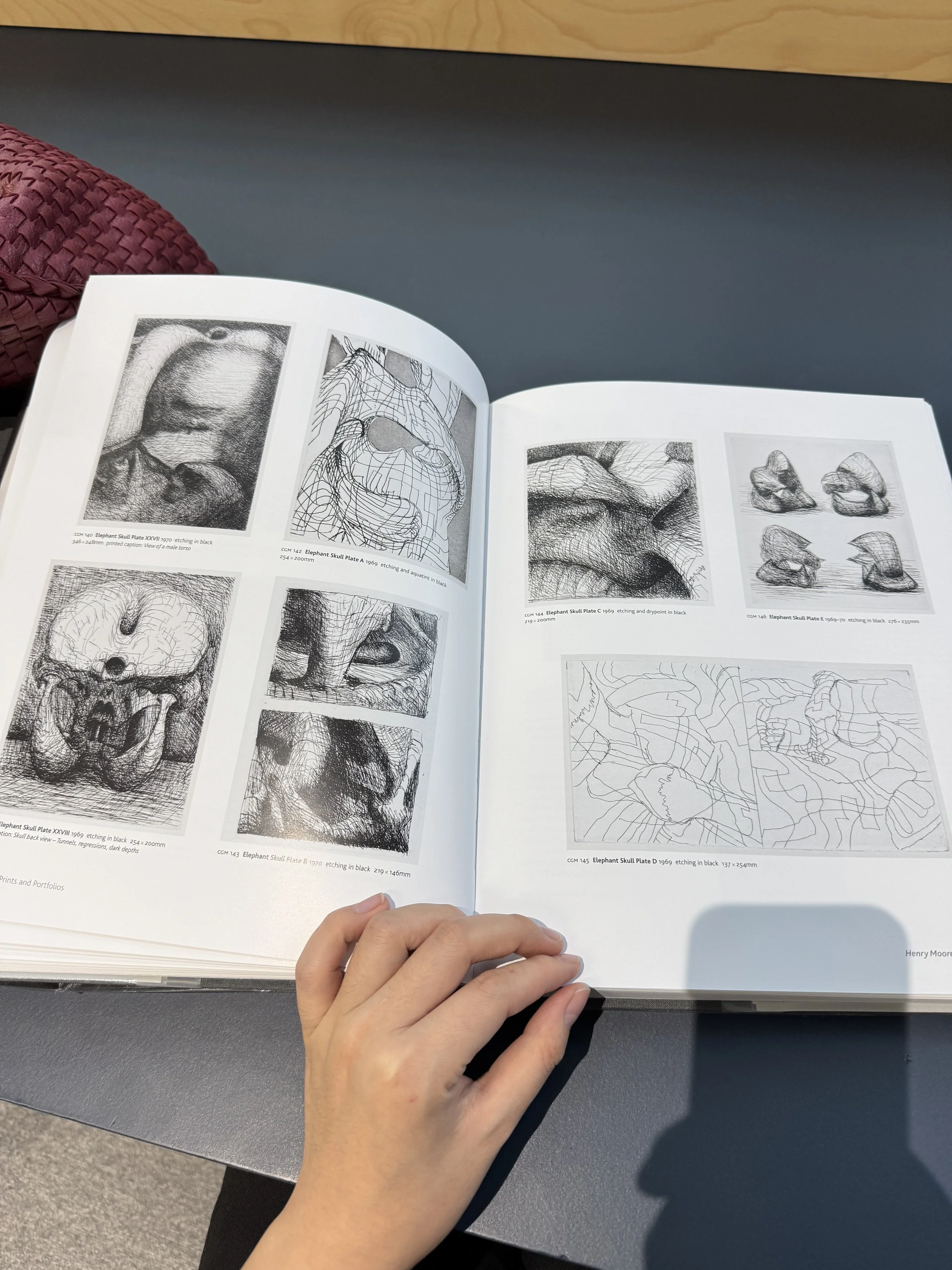 After Katherine’s talk, I had a one-to-one conversation with her where I shared my interests and working process. She recommended I visit the Henry Moore Studios, noting Moore’s deep interest in natural forms like stone and bones. Coincidentally, soon after our conversation, I spoke with my other beloved professor, Paul Coldwell. He also encouraged me to look into Moore’s work and specifically recommended Elephant Skull, a book that I found deeply inspiring.