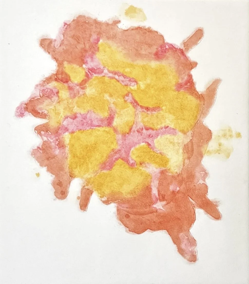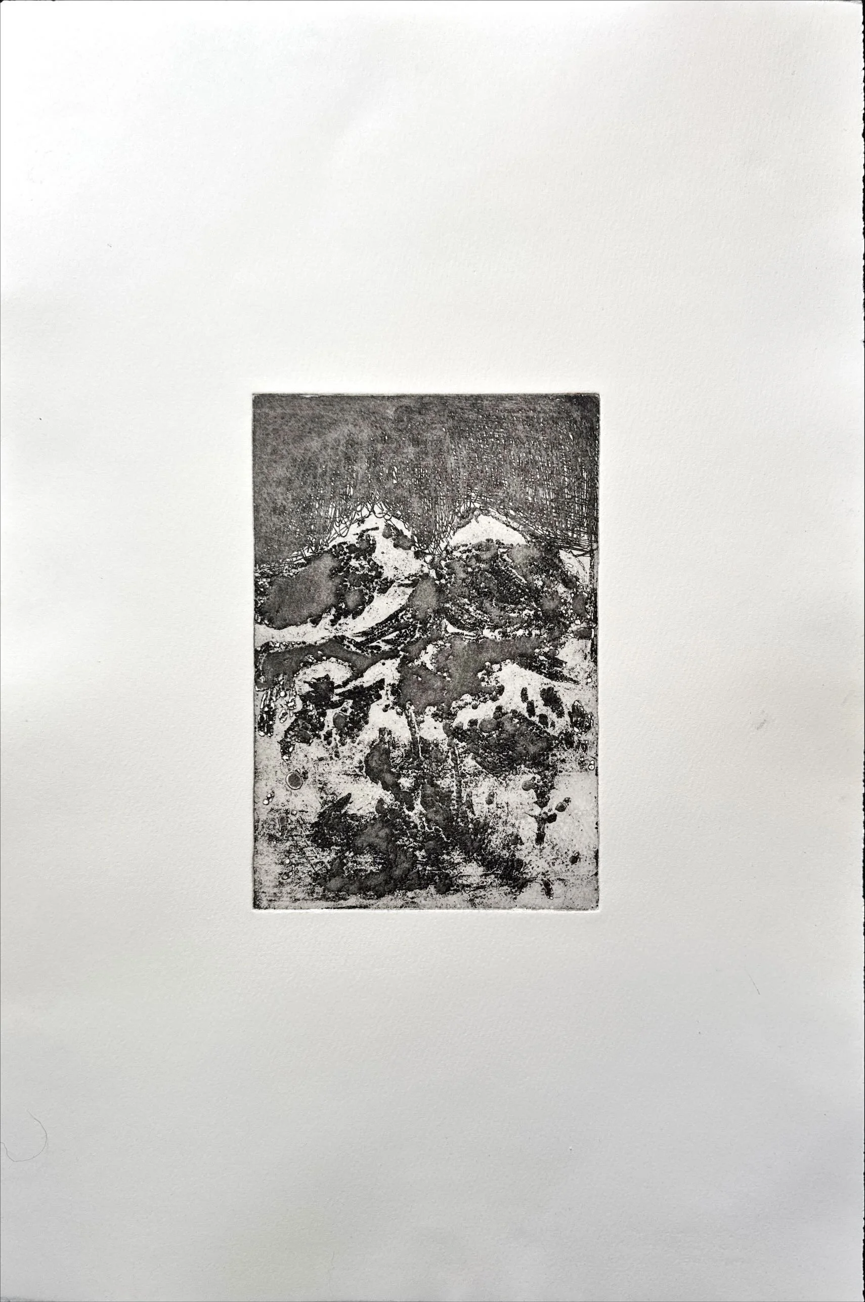 I drew inspiration from Dadaism and Jean Arp’s concept of chance, as well as the philosophies of Martin Heidegger and Taoism. My intention was to create an etching that captures the full arc of life—from beginning to end—as a continuous, transformative process. I used chemical reactions on the plate to symbolize the origins of life, gradually allowing it to dissolve until the entire plate broke down into fragments. Each fragment represents a different life, formed through this organic and unpredictable dissolution. Just like in life, the process is random and uncontrollable. We can only accept change—we cannot direct it. This reflects my understanding of existence: life shapes us in unique and unexpected ways, beyond our control.