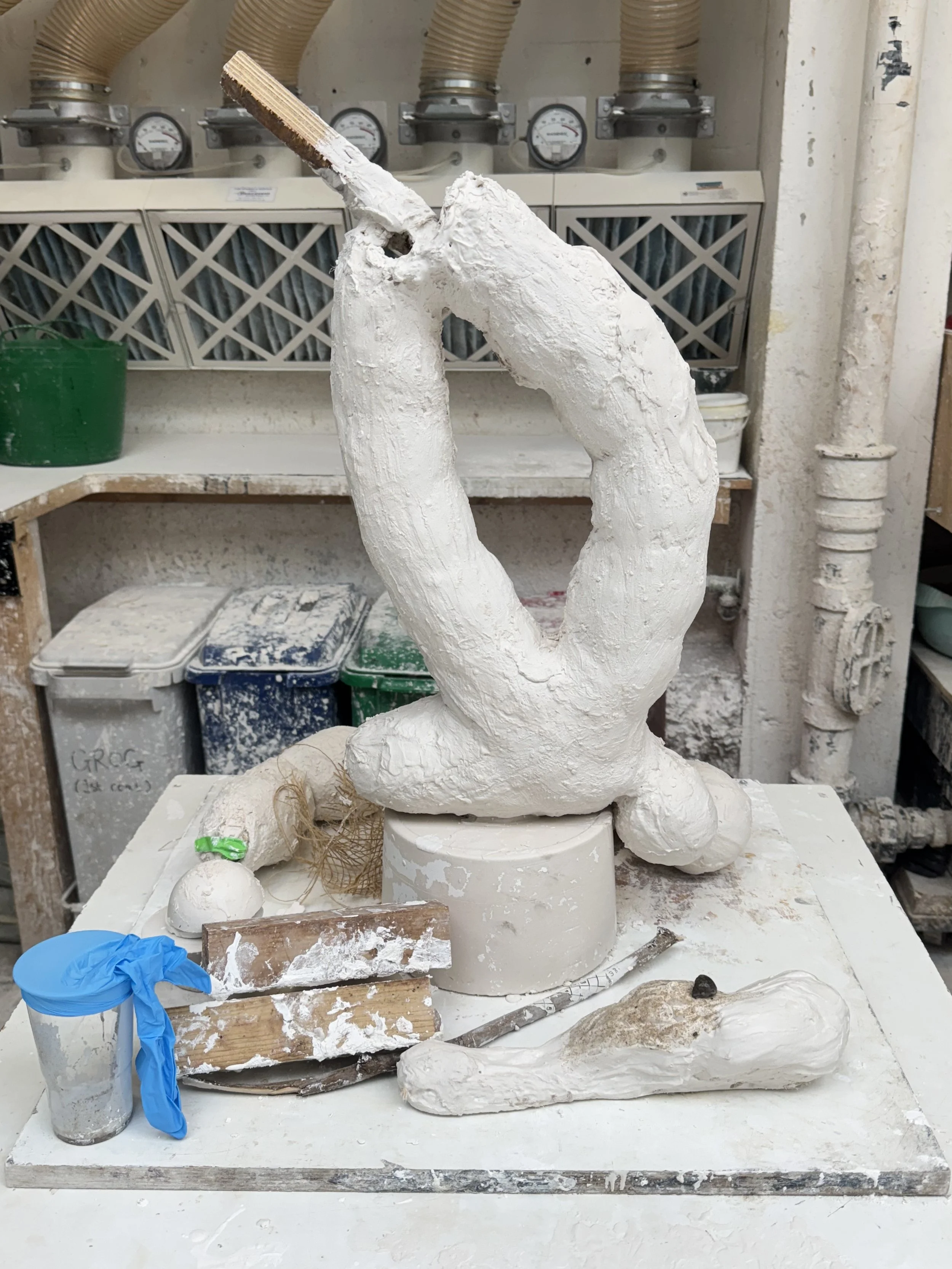 Later, I visited Henry Moore’s studio and gardens, which further inspired me. That experience encouraged me to start collecting more natural forms and objects as part of my own creative process. I already did some casting and wax sculpture in the unit 1, and also casted the hagstone which I found when I mud larking, See more process how to casting click here.