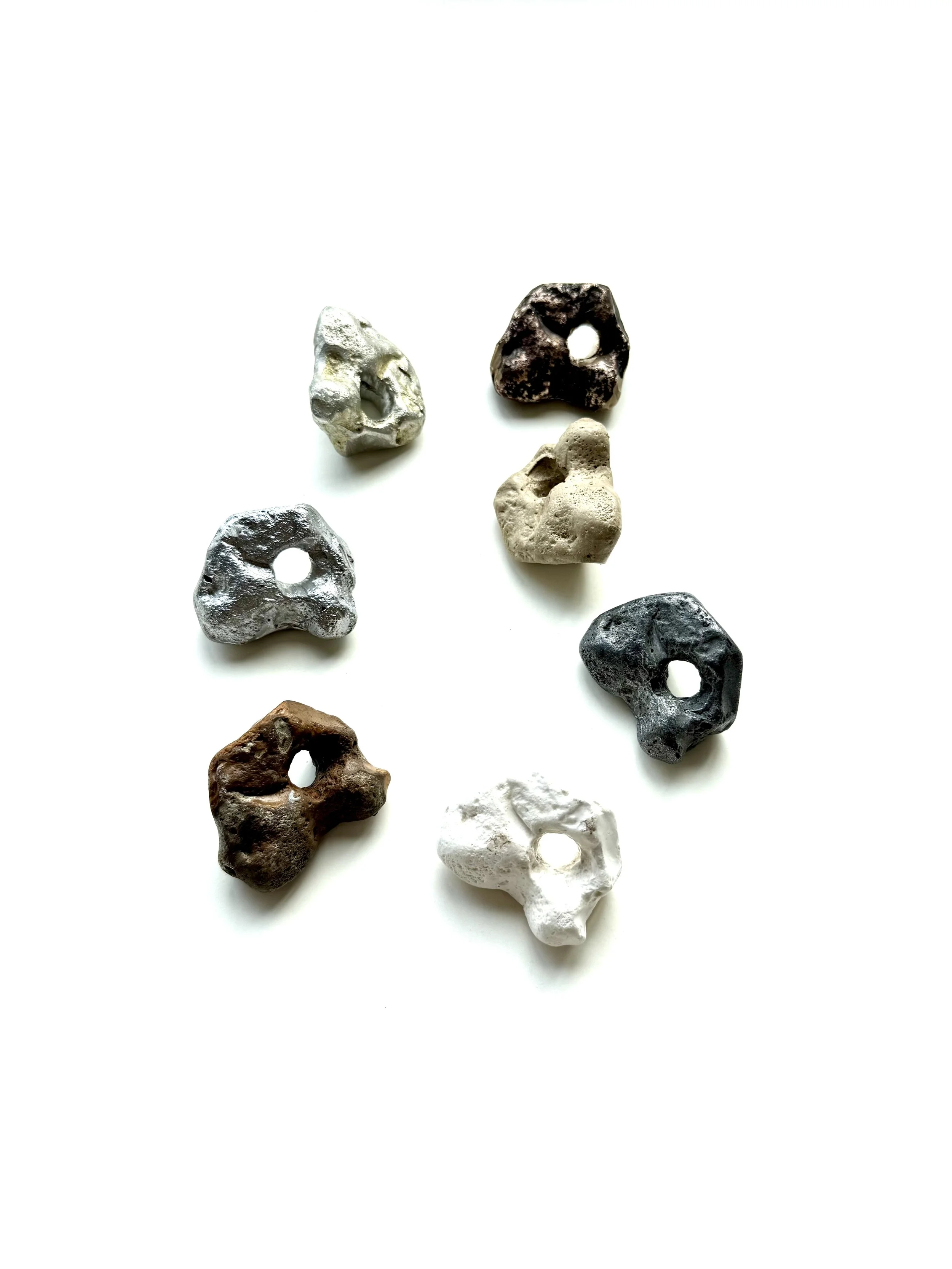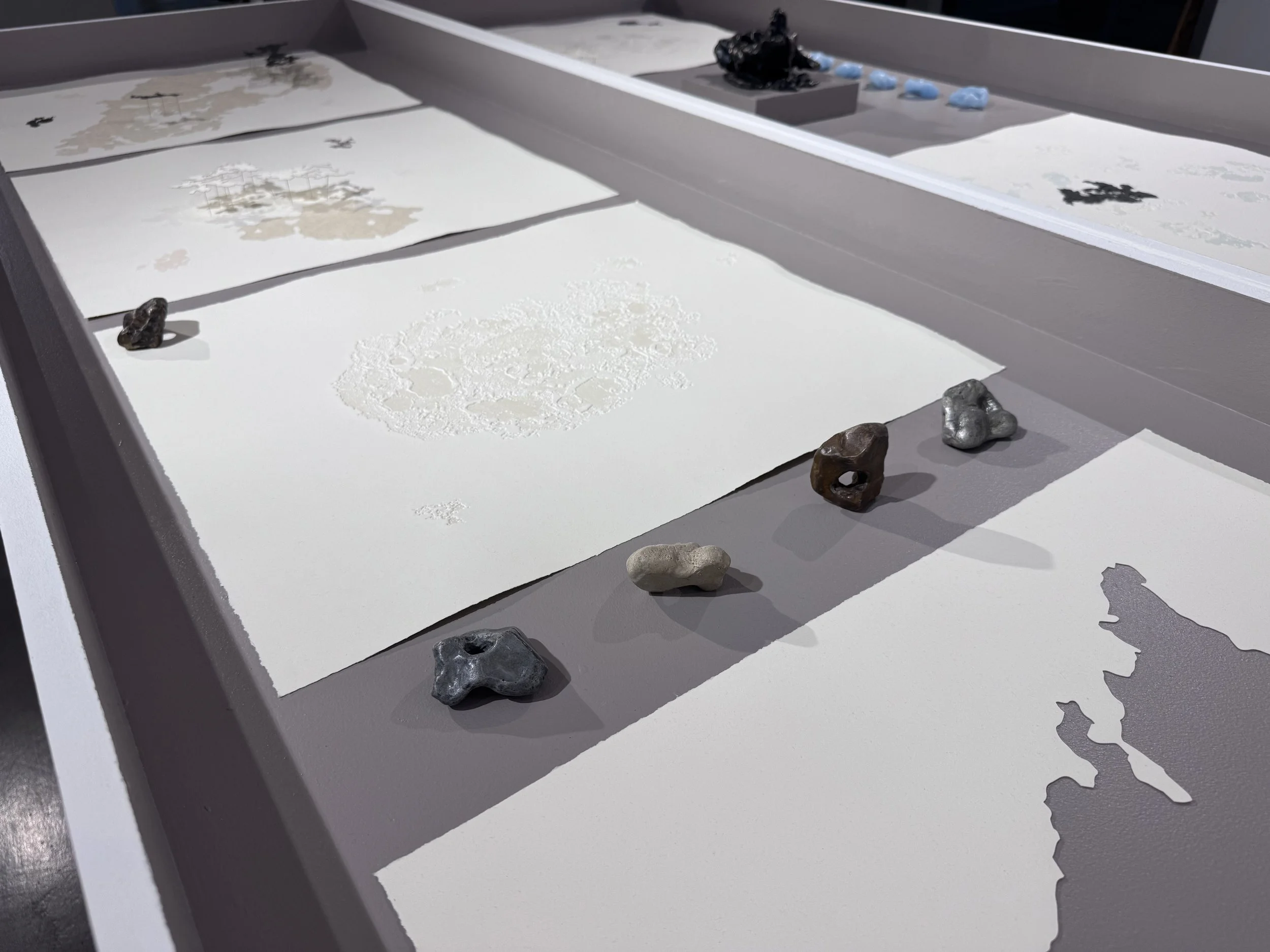 The Hagstone sculptures explore material contrasts, while the Transience series reveals variations in form, capturing fleeting moments and change. I also presented the Remains series, which reimagines fragments from my printmaking process, lifting them from the surface to give them new presence and significance.