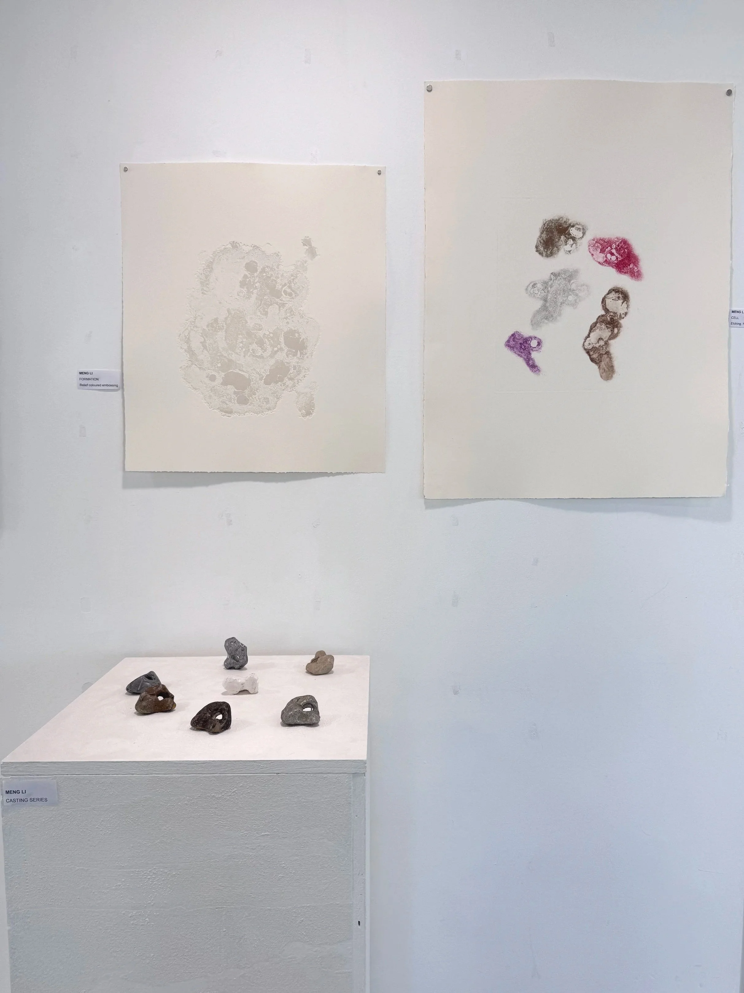 At my degree show, I presented three different types of work — prints, sculptures, and film. Throughout my course, I gradually discovered my core interest in new materialism, focusing on the materiality, texture, and form of objects. I explored these ideas through various techniques and media to create diverse textures, shapes, and dimensions, which led me to develop works across printmaking, sculpture, and moving image.